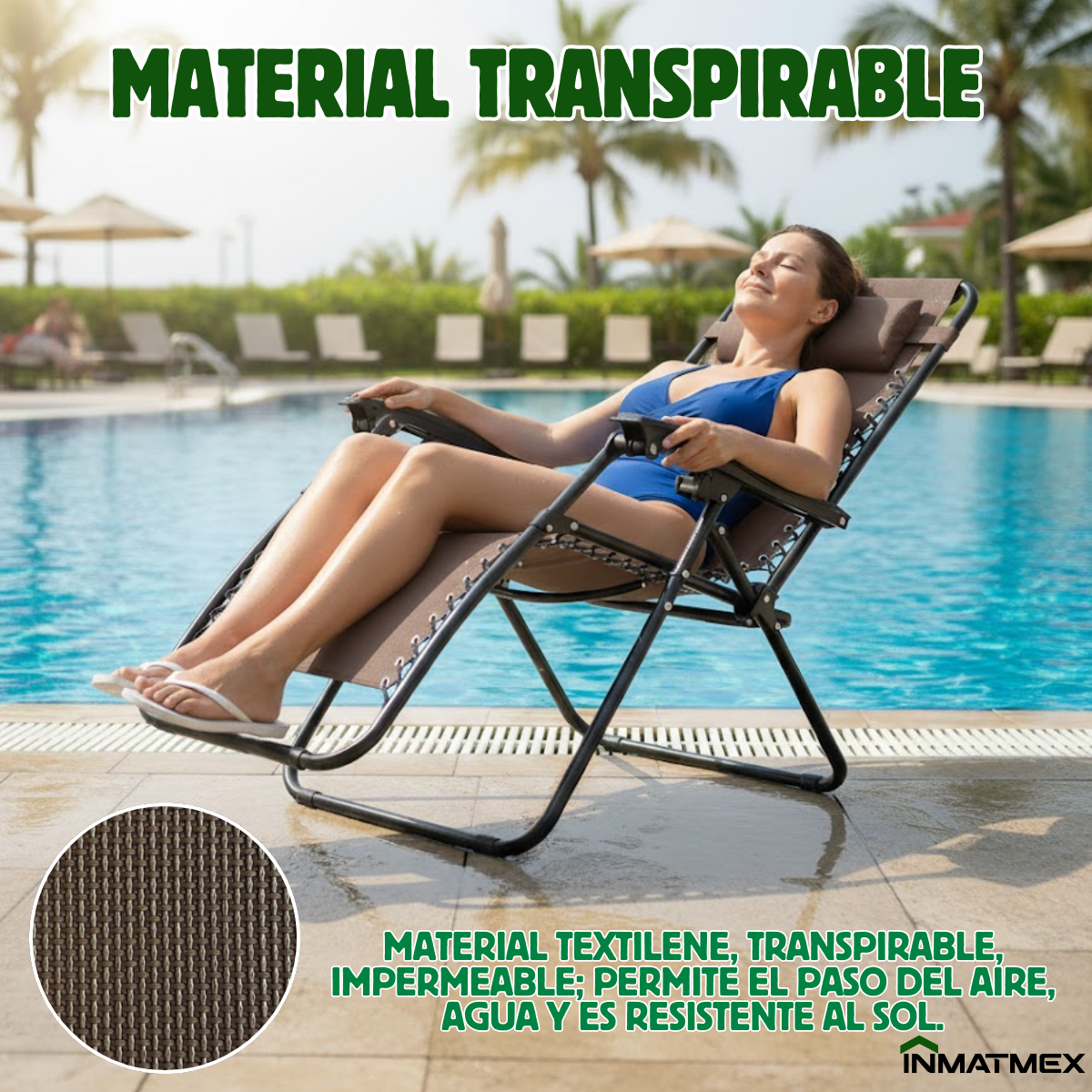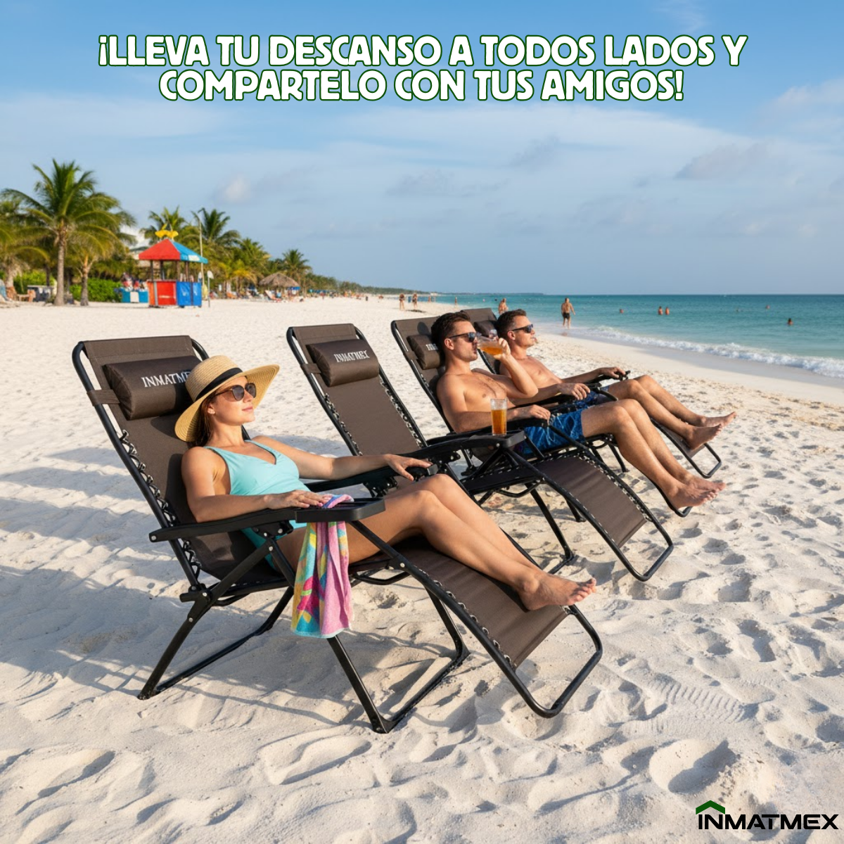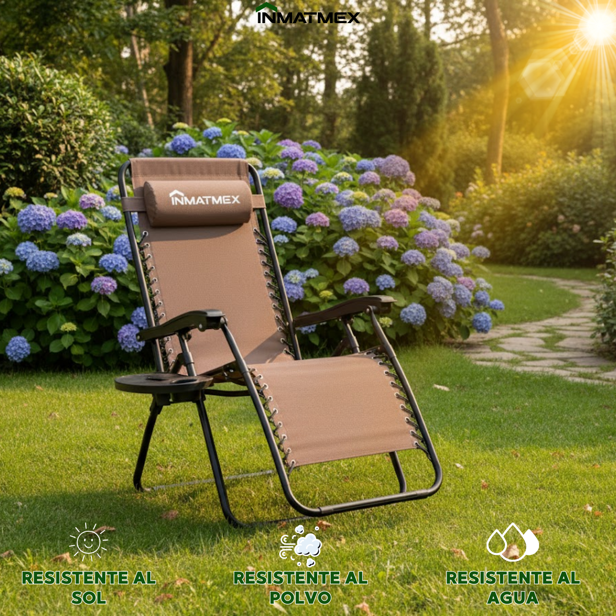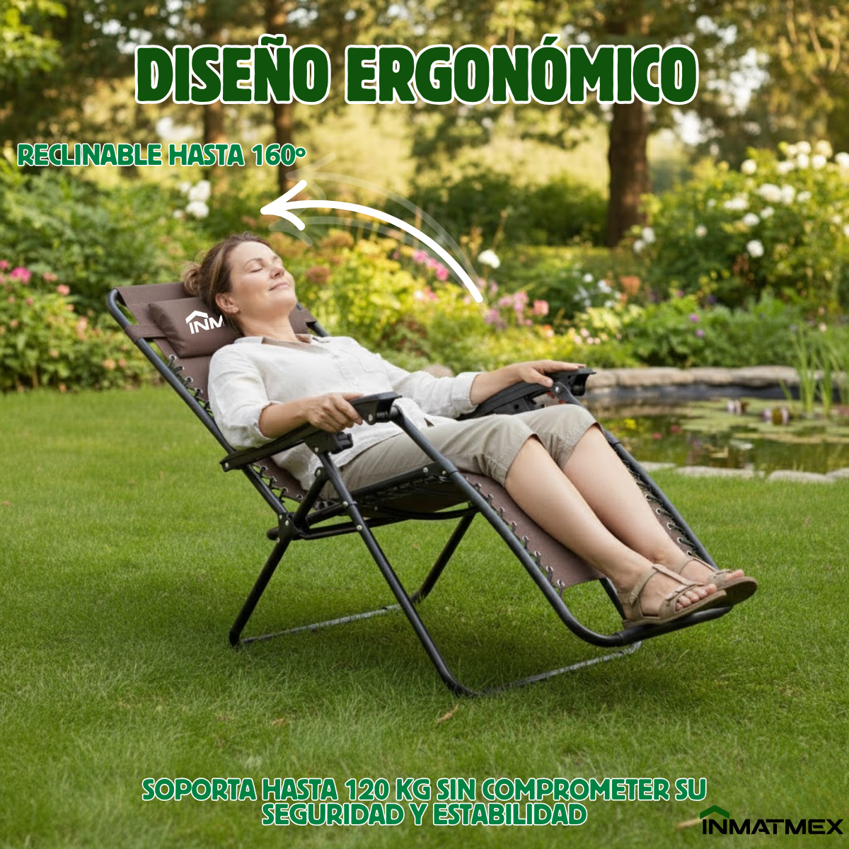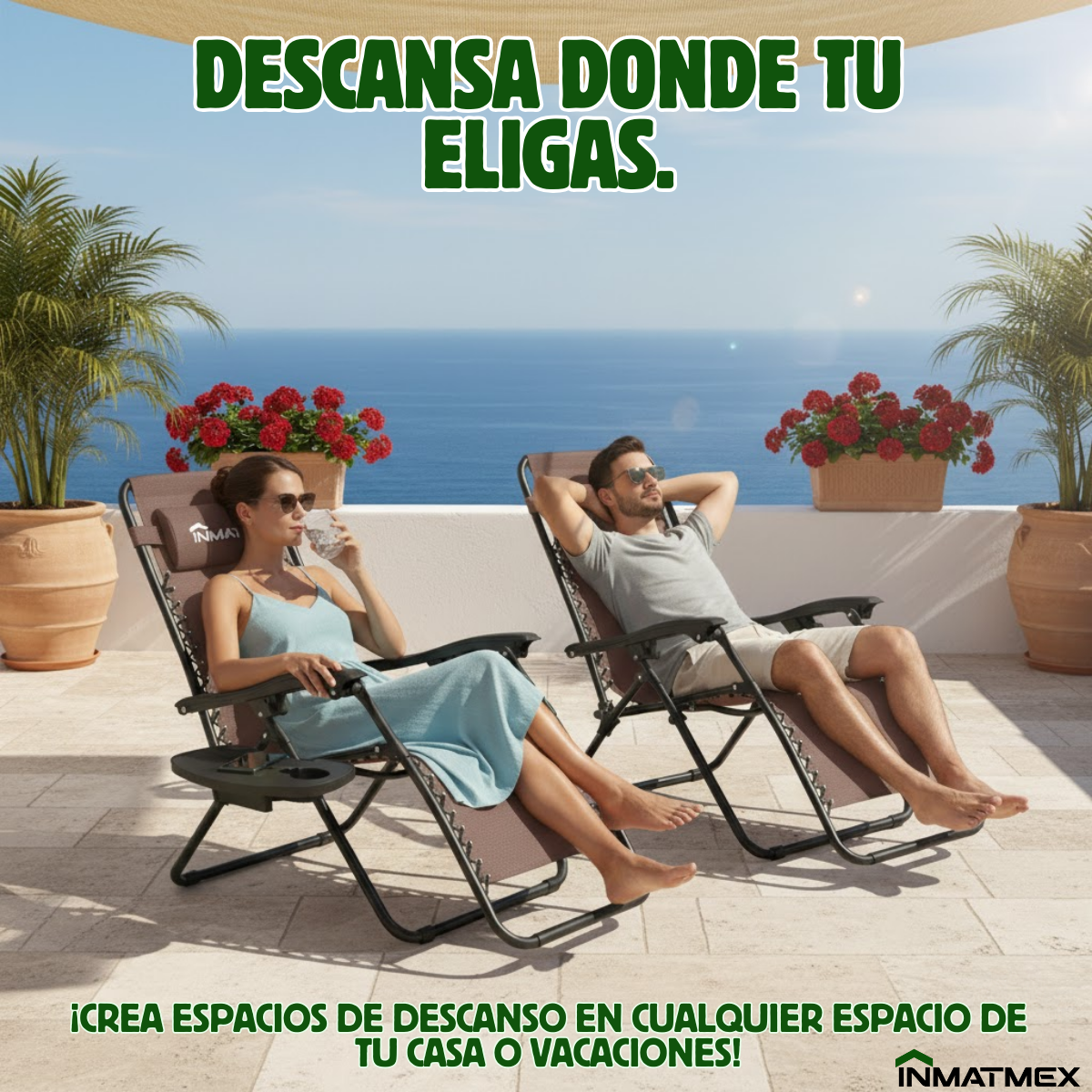 Camastro gravedad cero, diseñado para brindar máxima relajación y soporte ergonómico. Su sistema reclinable distribuye el peso de forma uniforme, reduciendo la presión en el cuerpo y ofreciendo una experiencia de descanso única en exteriores o interiores.