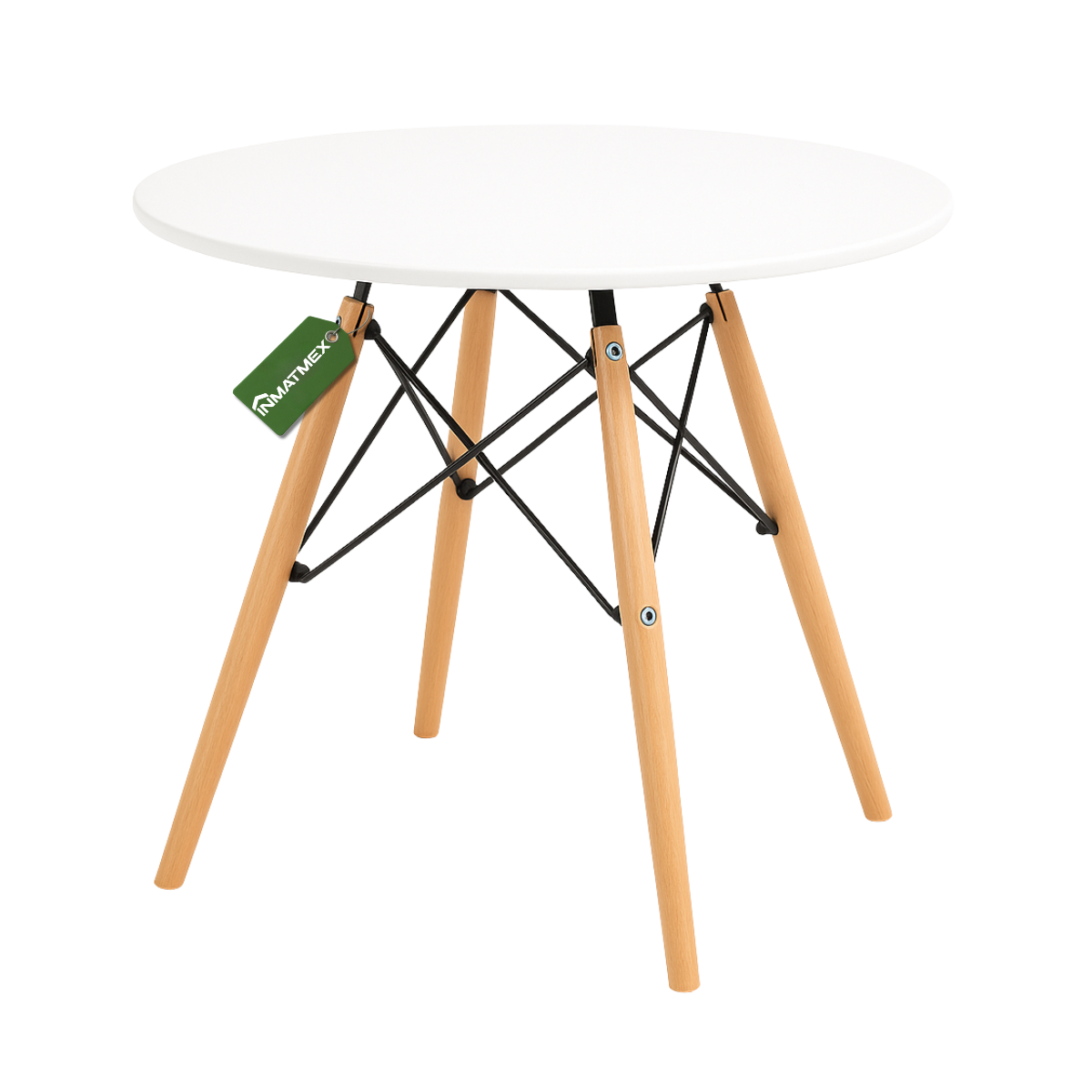 Mesa Eames redonda, de diseño moderno y versátil. Su base firme y superficie lisa ofrecen estilo y funcionalidad, perfecta para comedores, oficinas o espacios contemporáneos.