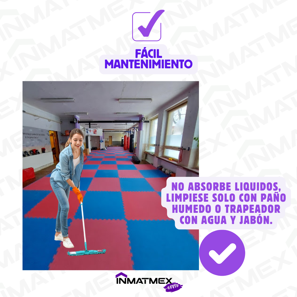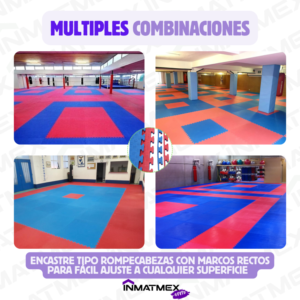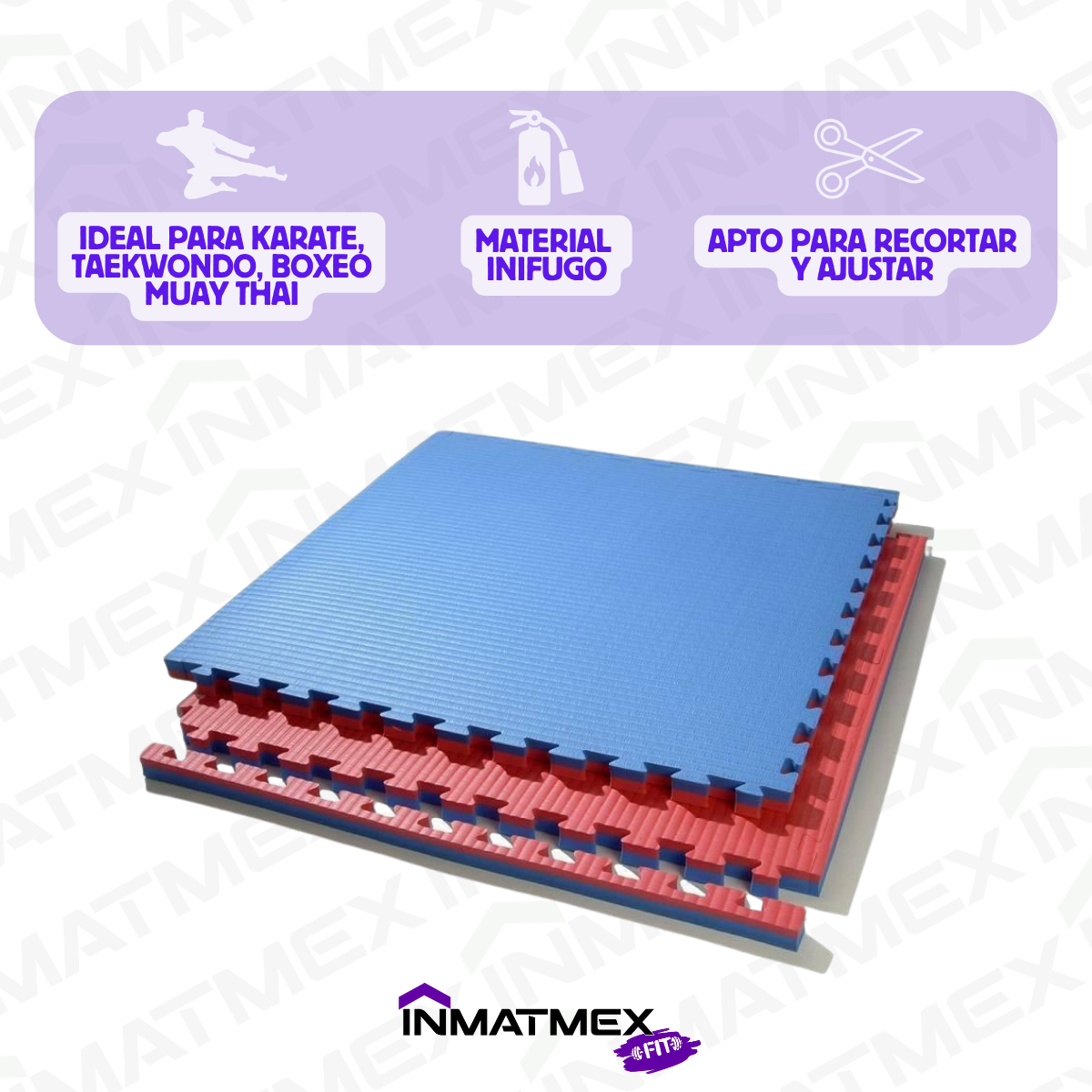 Tatami bicolor de 2 cm de grosor y medidas de 1 m x 1 m, resistente y acolchado. Ideal para artes marciales, gimnasios o áreas de entrenamiento, brinda confort, absorción de impacto y un diseño reversible para mayor versatilidad.