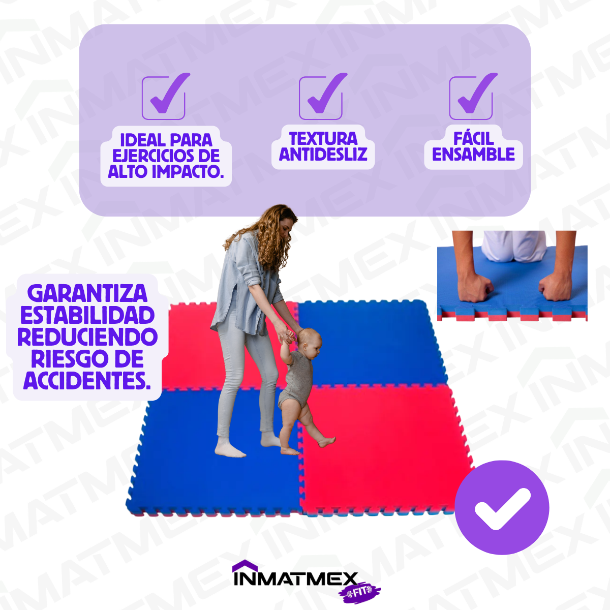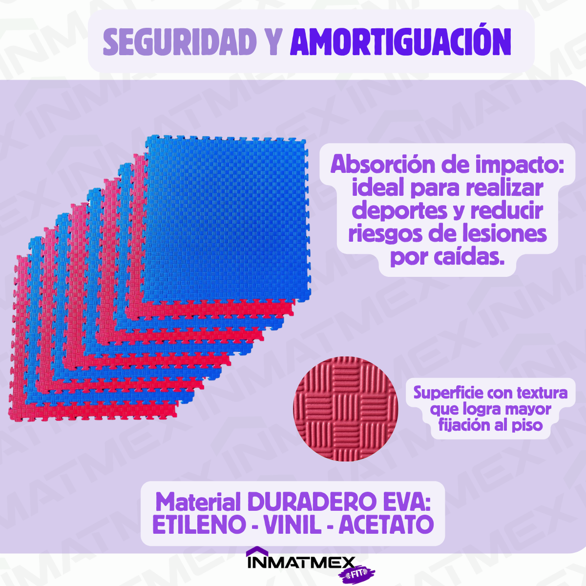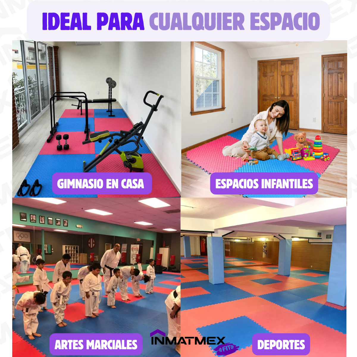 Tatami bicolor de 2 cm de grosor y medidas de 1 m x 1 m, resistente y acolchado. Ideal para artes marciales, gimnasios o áreas de entrenamiento, brinda confort, absorción de impacto y un diseño reversible para mayor versatilidad.
