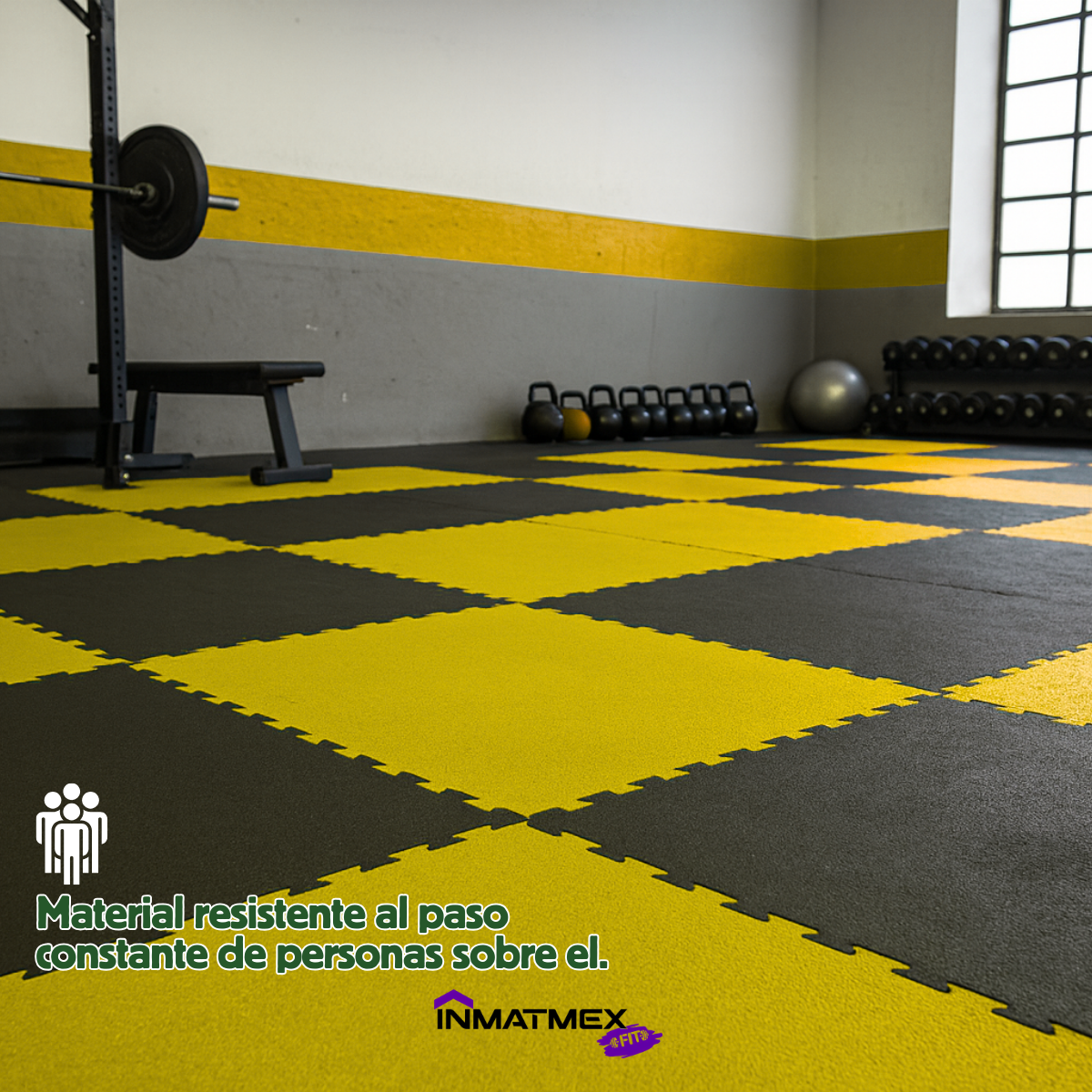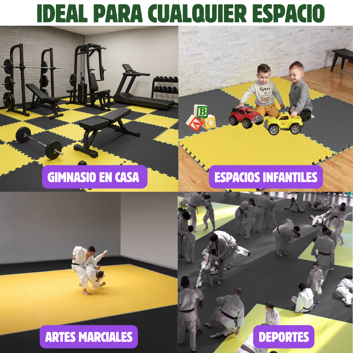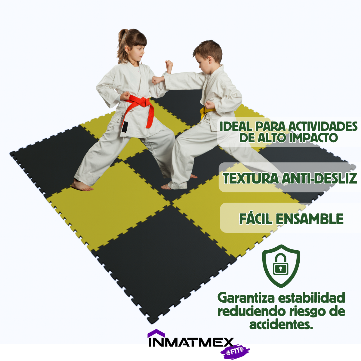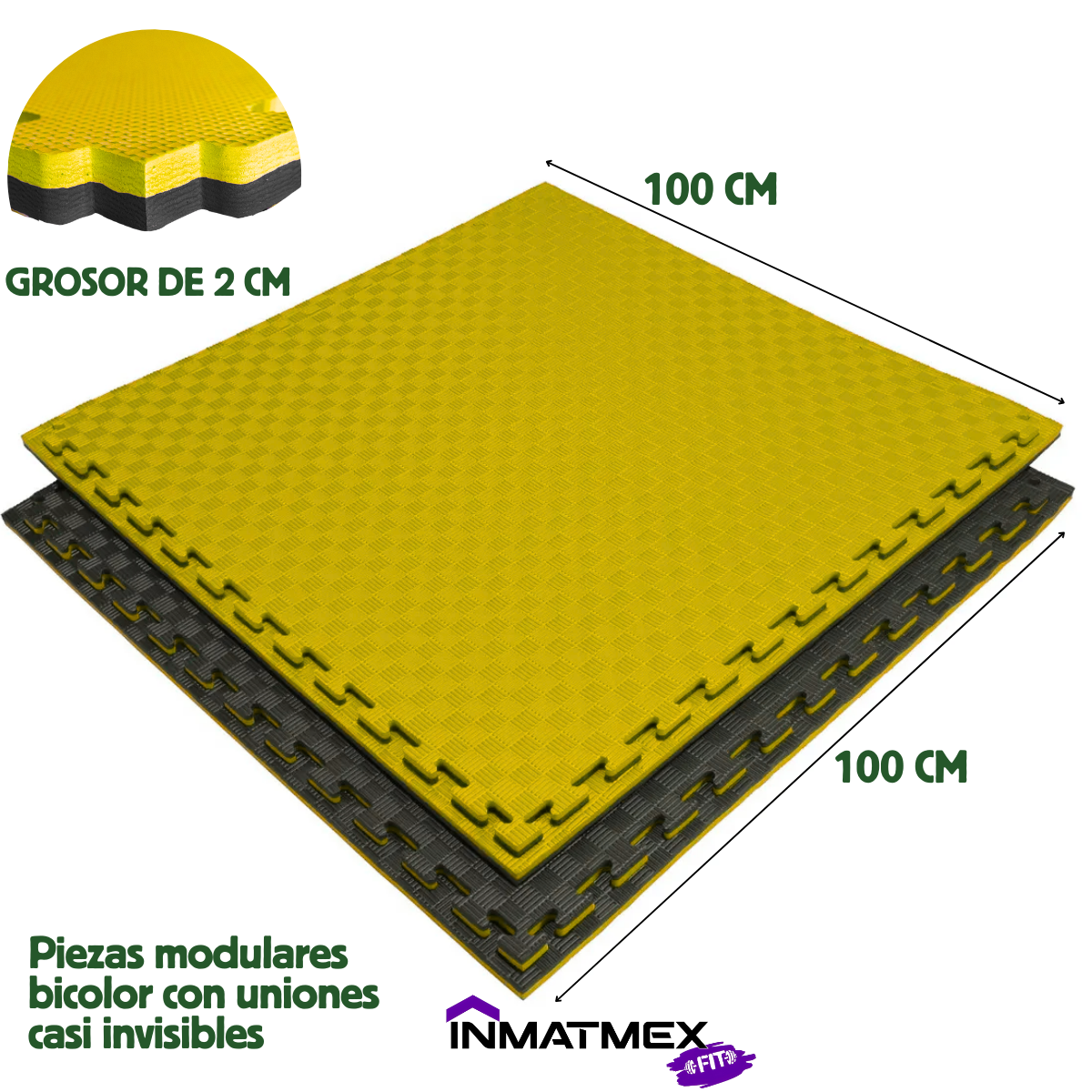 Tatami bicolor de 2 cm de grosor y medidas de 1 m x 1 m, resistente y acolchado. Ideal para artes marciales, gimnasios o áreas de entrenamiento, brinda confort, absorción de impacto y un diseño reversible para mayor versatilidad.